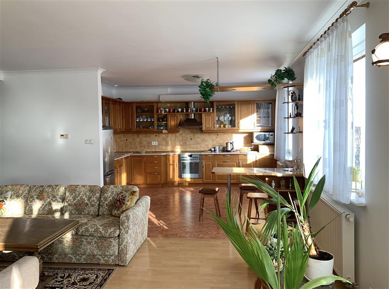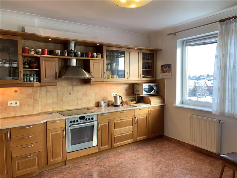 - aneksu kuchennego z oknem o powierzchni 19 m2. Kuchnia jest wyposażona w zabudowę meblową i sprzęt AGD.