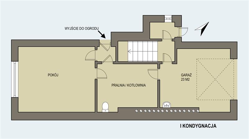 Parter: garaż, kotłownia/pralnia, pokój, wyjście do ogrodu – idealne miejsce na strefę techniczną oraz przechowywanie.