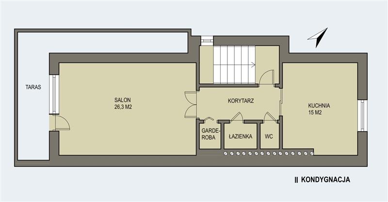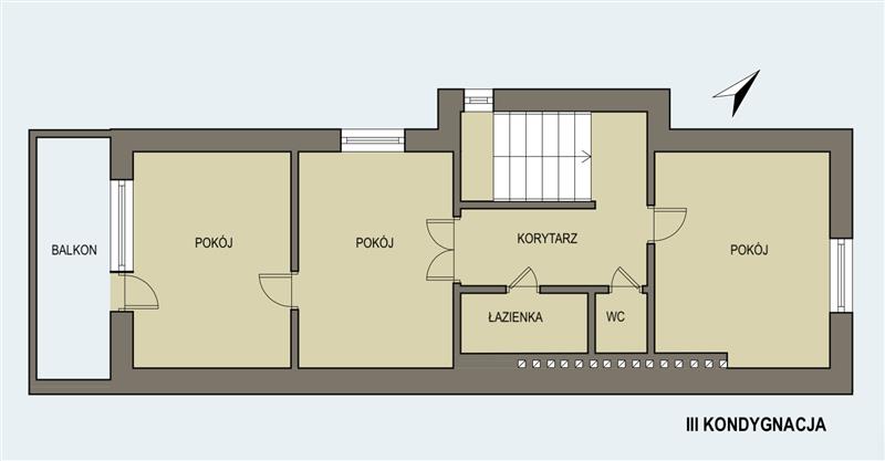 I Piętro: duża kuchnia, pokój dzienny z wyjściem na duży balkon, łazienka z prysznicem, osobne wc, garderoba.
