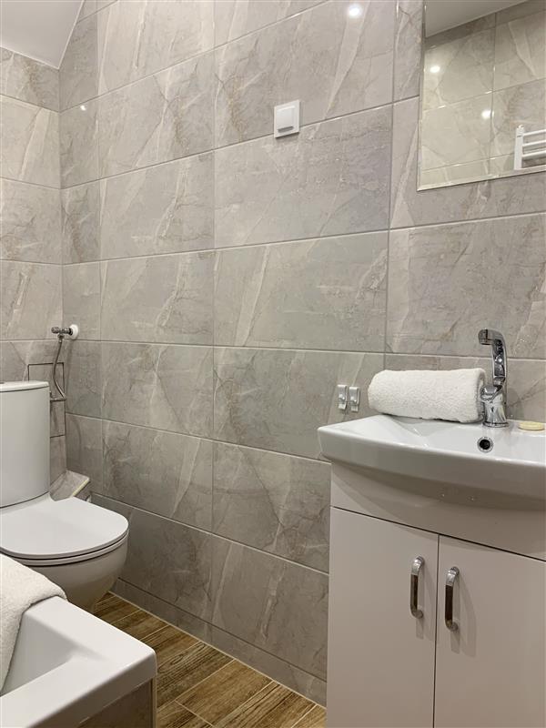 Łazienka wykończona w kafelkach, z wanną. W przedpokoju znajduje się szafa wnękowa. Na zamkniętej posesji znajduje się kilka miejsc postojowych dla mieszkańców. Do mieszkania przynależy piwnica. Ogrzewanie w mieszkaniu centralne (lokalna kotłownia), ciepła woda ogrzewana gazowym junkersem. Opłaty zimą ok. 450 zł wraz z zaliczką na wodę i ogrzewanie, latem ok. 250 zł miesięcznie. Kaucja wynosi 2500 złotych.