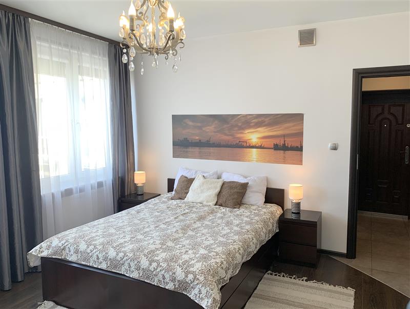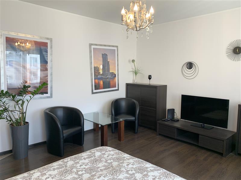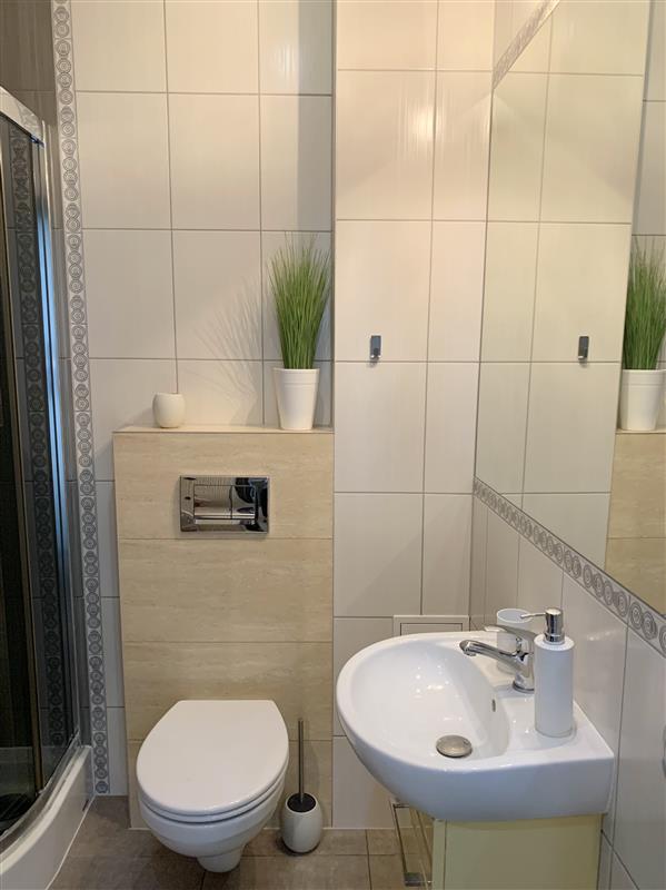 Pokój jest wyposażony w duże wygodne łóżko, dwa fotele, stolik, komody, stoliki nocne. Kuchnia mieści zabudowę meblową ze sprzętem AGD: kuchenką, lodówką, okapem. W kuchni jest również niewielki kącik jadalny z rozkładanym stołem i krzesłami. W przedpokoju jest pojemna szafa ubraniowa. W łazience mieści się jest kabina prysznicowa i pralka. Dodatkowo mieszkanie jest wyposażone w odkurzacz, żelazko, deskę do prasowania. Okna wychodzą na wewnętrzny dziedziniec, ekspozycja zachodnia, w oknach są rolety wewnętrzne. Ogrzewanie oraz ciepła woda z sieci miejskiej.