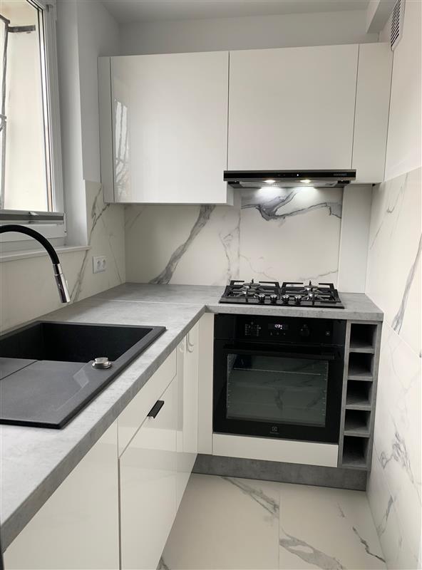 Kuchnia całkowicie urządzona i wyposażona w nową zabudową meblową oraz sprzęt AGD: zmywarkę, okap, lodówkę, piekarnik, płytę gazową. Okna od kuchni oraz jednej sypialni wychodzą na stronę wschodnią.