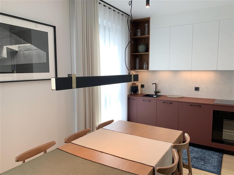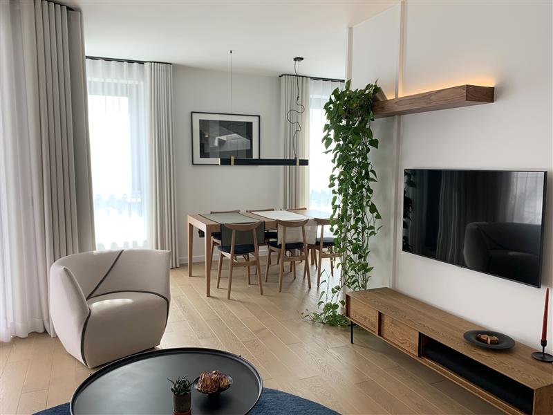 Apartament jest oferowany w wysokim standardzie. Wszystkie meble i sprzęty są nowe. Okna z ekspozycją na stronę południowo-zachodnią.