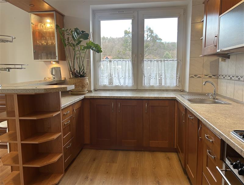 Z kuchni prowadzi bezpośrednie wyjście na taras, co stanowi dodatkowy atut mieszkania.