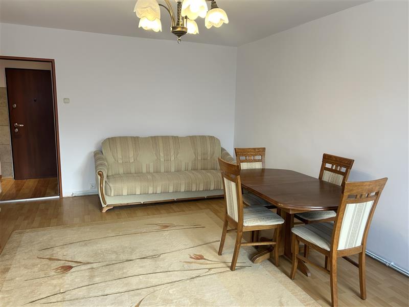 dużego, jasnego pokoju dziennego, ekspozycja zachodnia, pokój jest wyposażony w rozkładany dębowy stół, krzesła, dwa fotele i rozkładaną sofę,